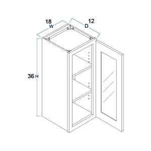 Wall Glass Door Open Frame Cabinet with Finished Interior 18″ x 36″