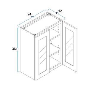 Wall Glass Door Cabinet with Finished Interior 24″ x 12″