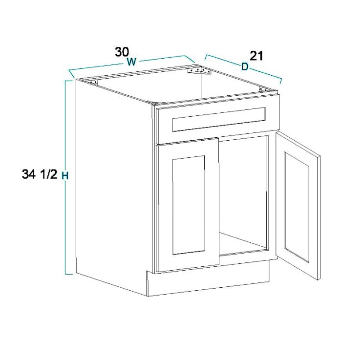 Vanity Sink Base Cabinet – 30″W X 34 1/2″H X 21″D-2D