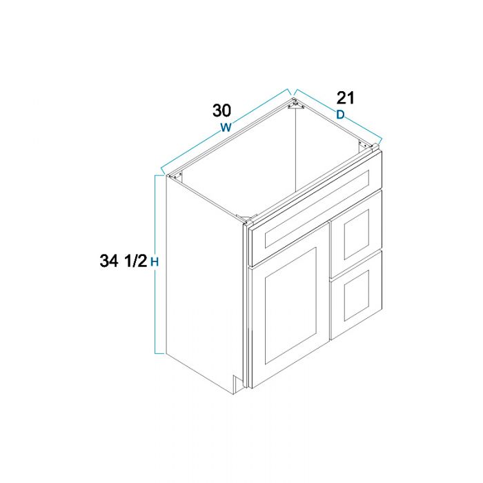 V3021D-R – Vanity Sink Base Drawer Right Cabinet 30″