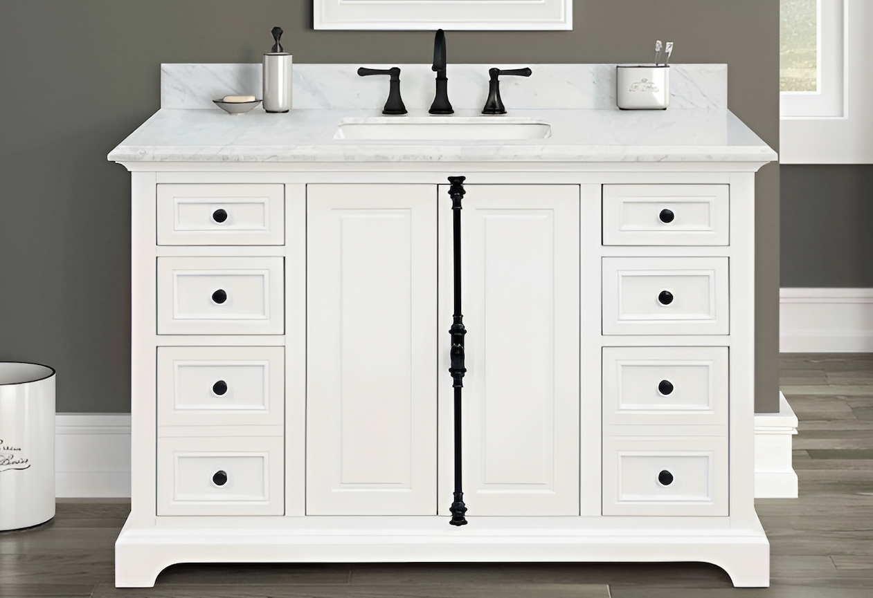 Pre- drilled for 8″ widespread faucet (faucet sold separately)