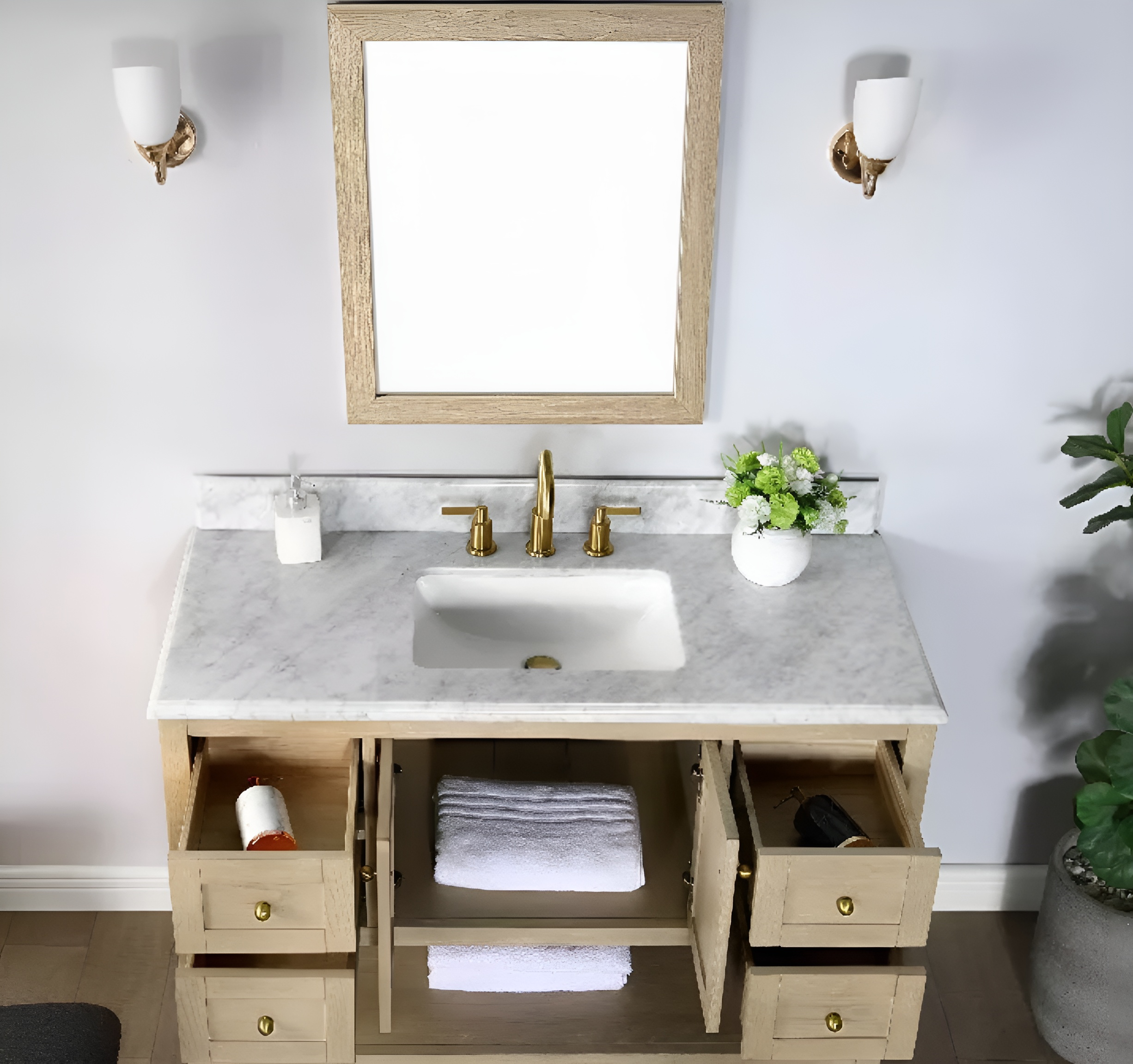 Open shelf vanity set
