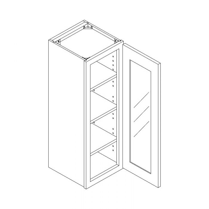 Wall Glass Door Open Frame Cabinet with Finished Interior – 18″W X 42″H X 12″ D-1D-3S