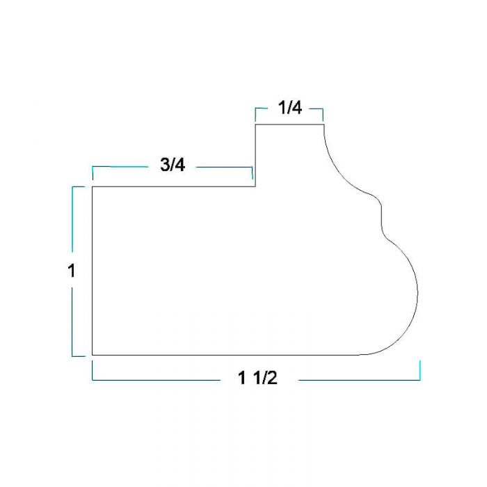 Light Rail Moulding – 8′ long – 1 1/4″H X 1 1/2″D