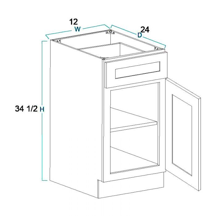 Base Cabinet – 12″W X 24″D X 34-1/2″H-1D-1DRA-1S