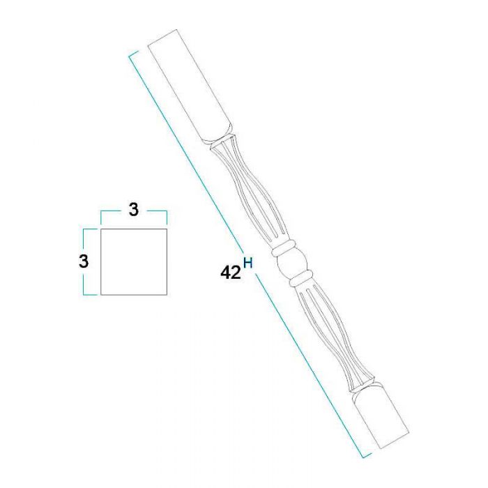 Fluted Leg Post – 3″W X 34 1/2″H X 3″D