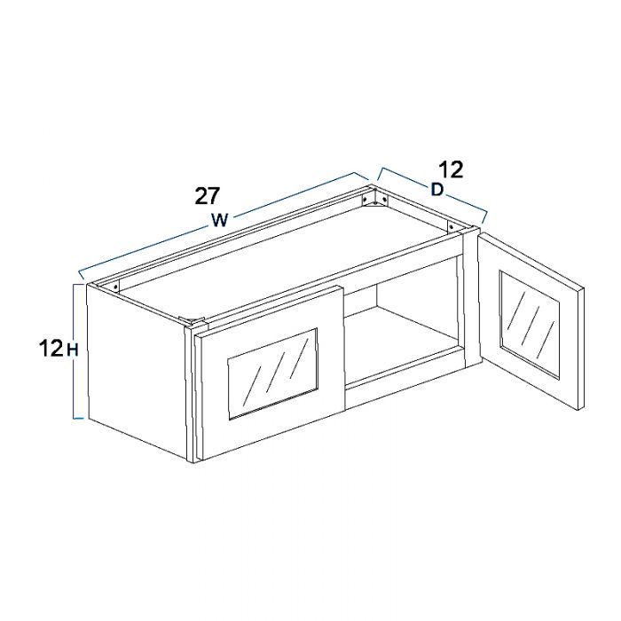 Wall Glass Door Cabinet with Finished Interior – 27″W X 12″H X 12″D-2D