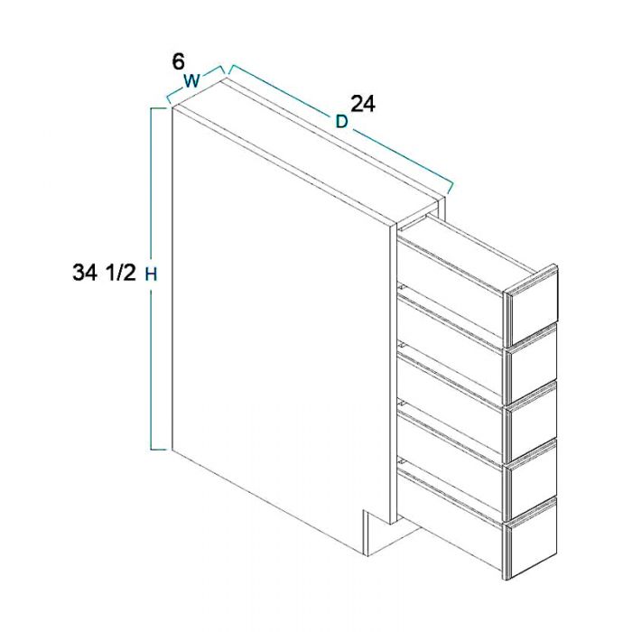 Base Spice Cabinets 6″W X 24″D X 34-1/2″H-5DRA