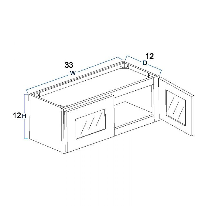 Wall Glass Door Cabinet with Finished Interior – 33″W X 12″H X 12″ D-2D