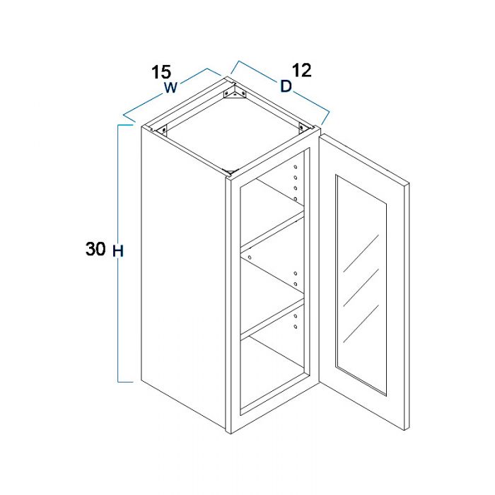 Wall Mullion Glass Door Cabinet with Finished Interior – 15″W X 30″H X 12″D-1D-2S