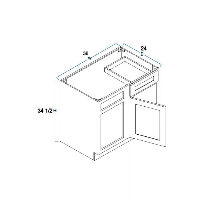 Blind Base Corner Cabinet (Right) 36″W X 24″D X 34 1/2″H-1D-1DRA-1S – Must be pulled to 39″ – Door Width – 11 1/2″ Opening Width – 9″