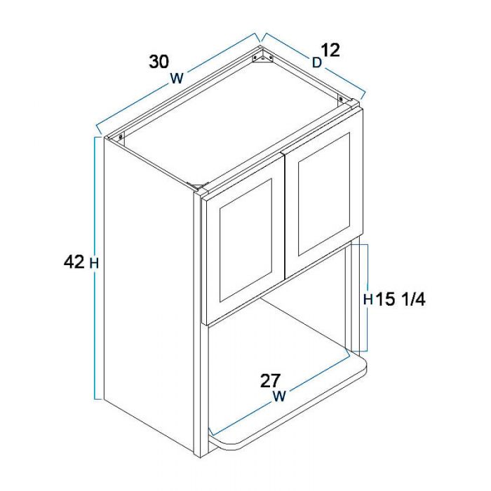 Wall Microwave Cabinet – 30″W X 42″H X 12″D-2D-1S – Opening is 27″W X 18 1/2″H with 18″D shelf