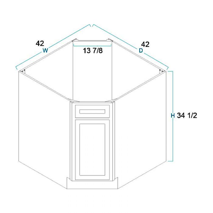 • The false drawer head on this cabinet is 23-1/2″ wide and 6-3/4″ tall.