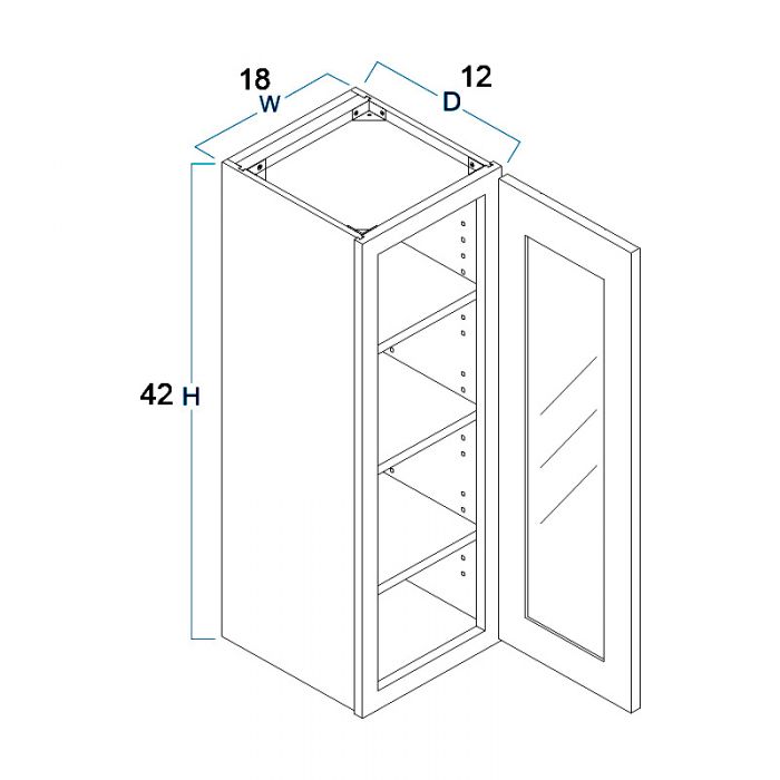 Montgomery Grey Elite Wall Open Frame Glass Door Cabinet (18″W x 42″H x 12″D)