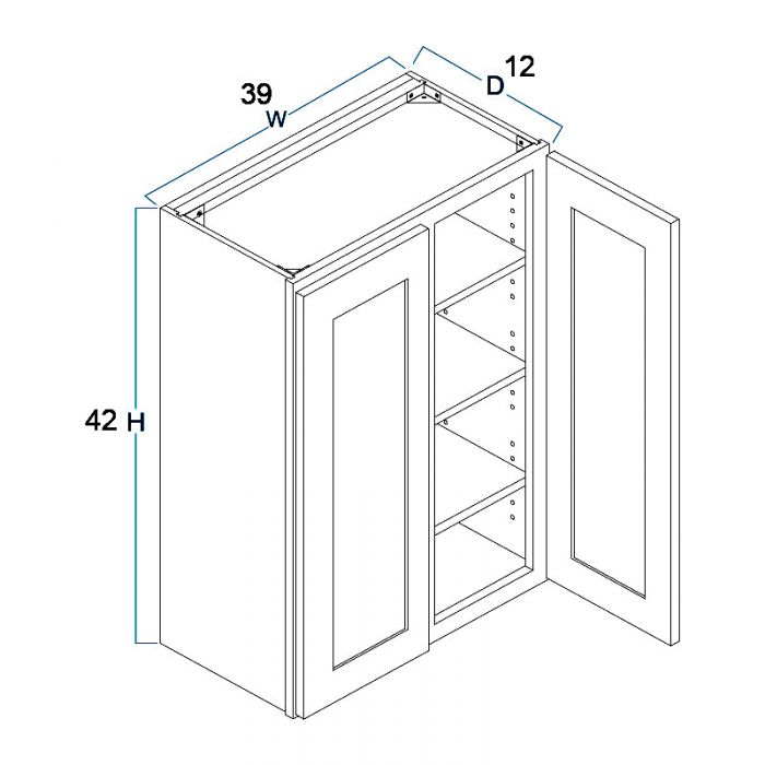 Wall Cabinet – 39″W X 42″H X 12″D-2D-3S
