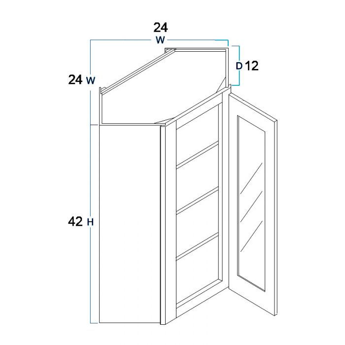 Be the first to review “Wall Diagonal Glass Door Cabinet with Finished Interior 24″ x 42″”