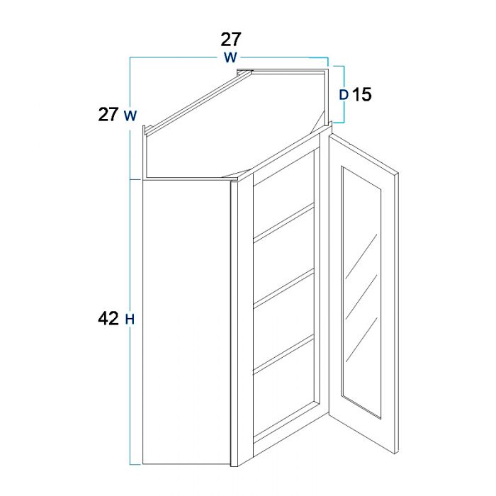 Be the first to review “Wall Diagonal Glass Door Cabinet with Finished Interior 27″ x 42″”