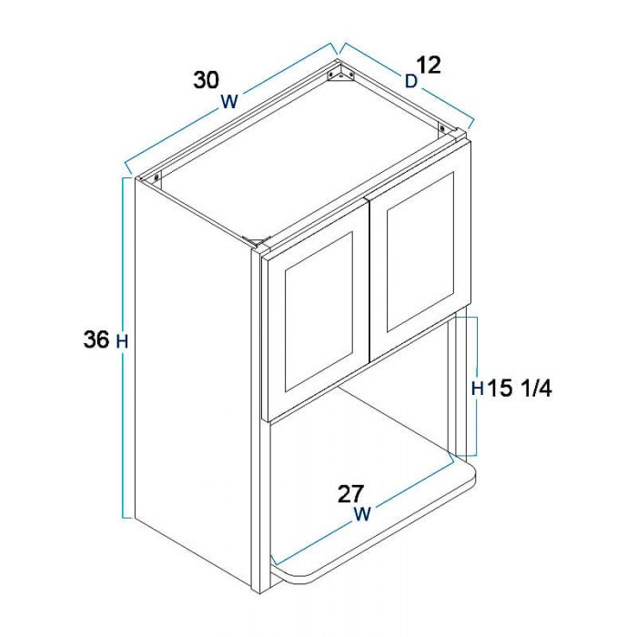Wall Microwave Cabinet – 30″W X 36″H X 12″ D-2D-1S – Opening is 27″W X 18 1/2″H with 18″D shelf