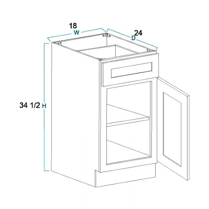 Base Cabinet – 18″W X 24″D X 34-1/2″H-1D-1DRA-1S