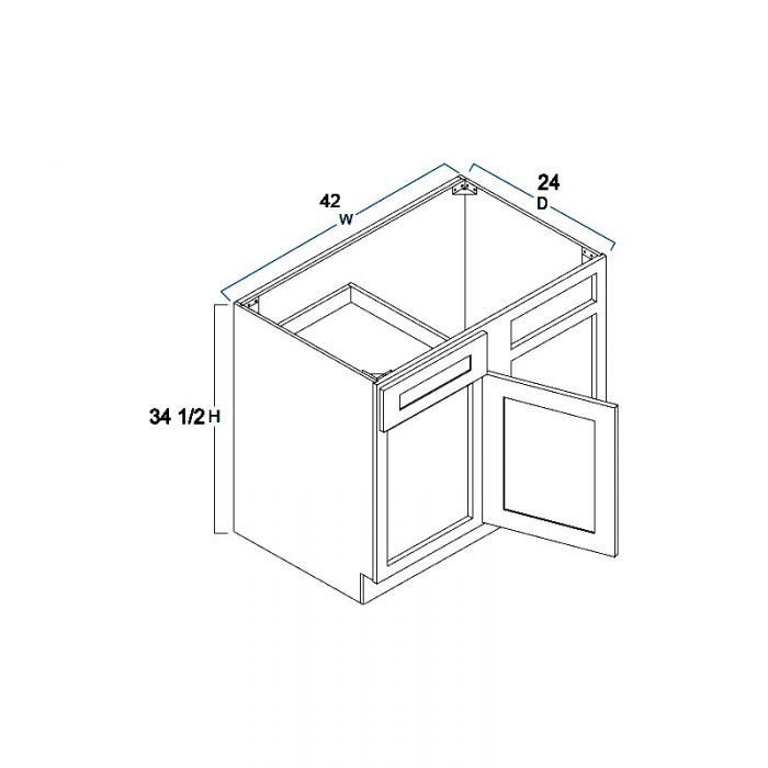 Blind base corner cabinet (Right) 42″W X 24″D X 34-1/2″H-1D-1DRA-1S – Must be pulled to 45″ – Door Width – 17 1/2″ Opening Width – 15″