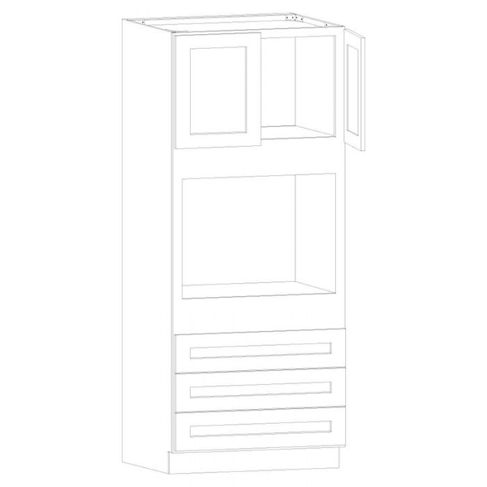 Oven Cabinet – 33″W X 90″H X 24″D-2D-3DRA – Opening is 27″W X 25 1/4″H – Bottom drawers can be removed to fit double ovens