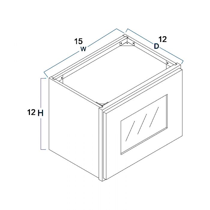 Wall Glass Door Cabinet with Finished Interior – 15″W X 12″H X 12″D-1D