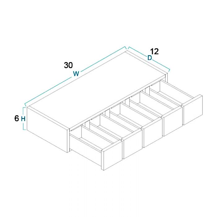 Wall Spice Drawer Cabinet – 30″W X 6″H X 12″D-5DRA