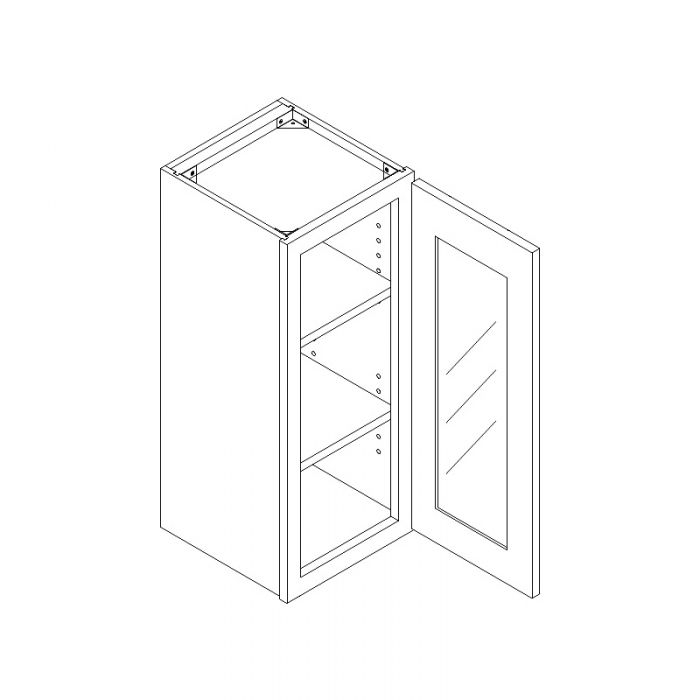 Wall Open Frame Glass Door Cabinet with Finished Interior – 18″W X 30″H X 12″D-2D-2S