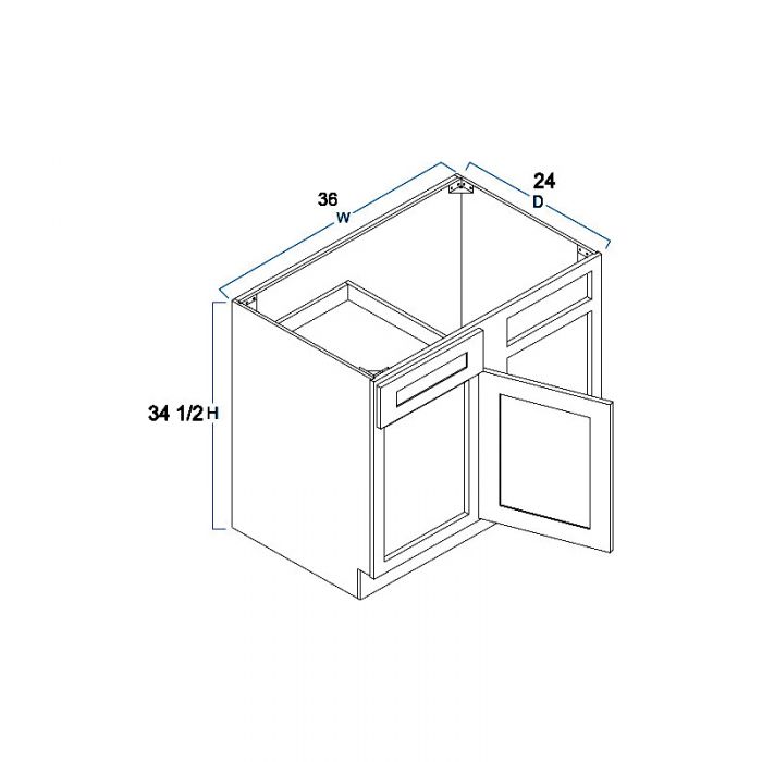 Blind Base Corner Cabinet (Right) 36″W X 24″D X 34 1/2″H-1D-1DRA-1S – Must be pulled to 39″ – Door Width – 11 1/2″ Opening Width – 9″