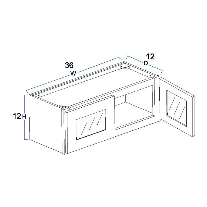 Wall Glass Door Cabinet with Finished Interior – 36″W X 12″H X 12″D-2D