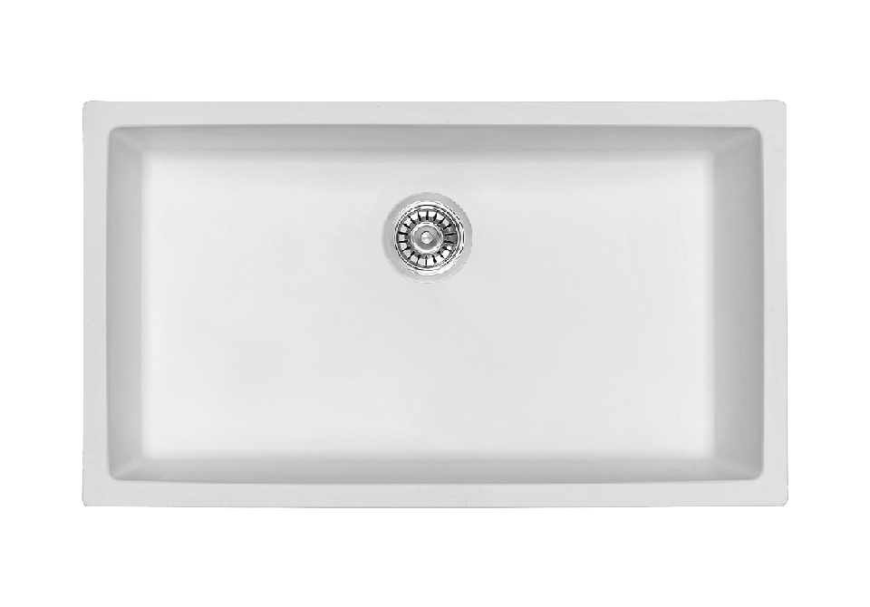 The GC100W large single bowl undermount sink is made from a granite composite material that is comprised of 80% quartz sand and 20% acrylic. The overall dimensions of the GC100W is 32-1/2”W x 18-3/4”L x 10”D. The inside dimensions are 30”W x 16-1/4”L x 10”D with an offset 3 1/2” drain. Strictly Sinks granite composite sinks are stain resistant, scratch resistant, heat resistant up to 500 degrees Fahrenheit and non porous. A minimum sink base of 33” is required for installation. As always, our granite composite sinks are covered under a limited lifetime warranty for the life of the sink.