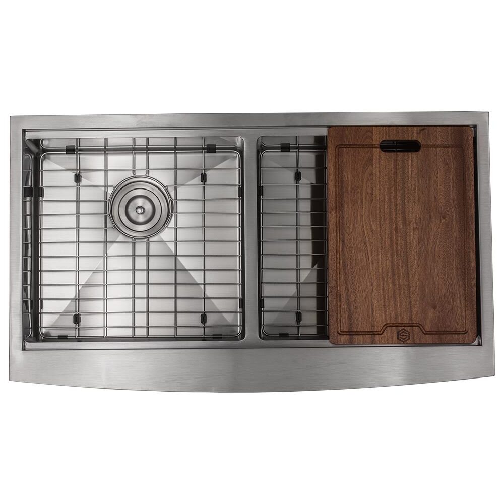 The SA5050A is part of our new product line for kitchen sinks. It offers a sleek design featuring a stainless steel brushed finish which comes complimented by a circle drain. The brushed finish comes equipped with a scratch, stain, and heat resistant surface and is constructed out of certified high quality 304-Grade Stainless Steel. The overall outer dimensions of the SA5050A are 33” x 21”.