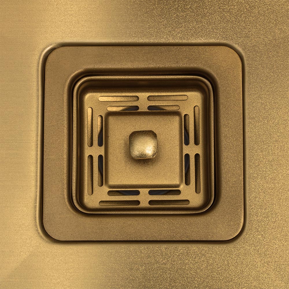 The SA33G is part of our new product line for kitchen sinks. It offers a sleek design featuring a gold brushed finish which comes complimented by a square drain. The gold finish comes equipped with a scratch, stain, and heat resistant surface and are constructed out of certified high quality 304-Grade Stainless Steel. The overall outer dimensions of the SA33G are 33” x 21”. The inside dimensions measure at 31 1⁄4” x 16 1⁄2” x 10” (depth) and a minimum cabinet size of 33” is required.