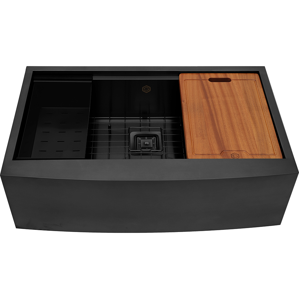 Gun Metal Black Farmhouse Apron With Square Drain (SA33BLK)