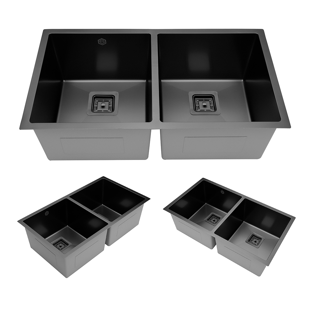 The R 5050 Black is part of our new product line for kitchen sinks. Its sleek design with a square drain, 10” depth and Black finish makes it a favorite for designers and home owners who are remodeling a kitchen. The Black offers a stain resistant, scratch resistant and liquid repellant surface. It is hand crafted from 16 gauge 304 grade stainless steel. The overall dimensions of the R 5050 Black are 32 3/8” x 18” x 10” and a minimum cabinet size of 33” is required. The cutout template, square garbage disposal adapter (color matching), colander and bottom grid are included with the purchase. As always our stainless steel products are covered under a limited lifetime warranty.