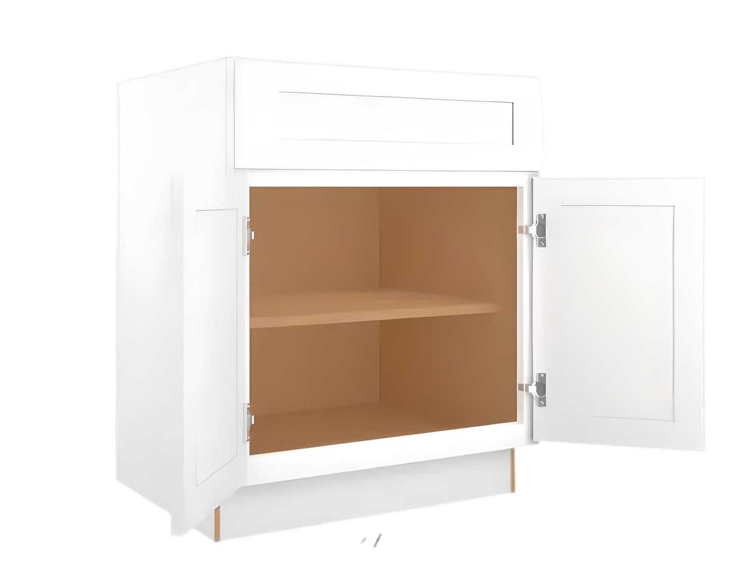 27″ Base Cabinet: 2 butt doors, 1 drawer, 1 shelf