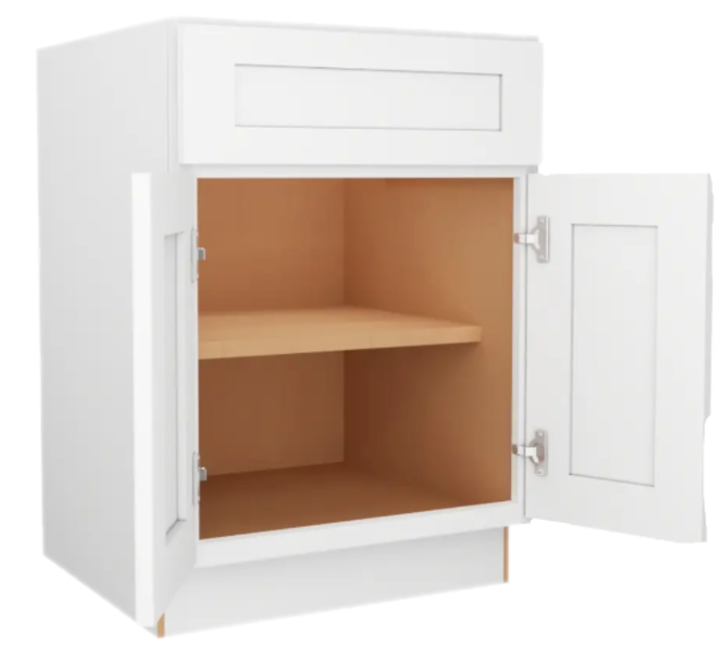 24″ Base Cabinet: 2 butt doors, 1 drawer, 1 shelf