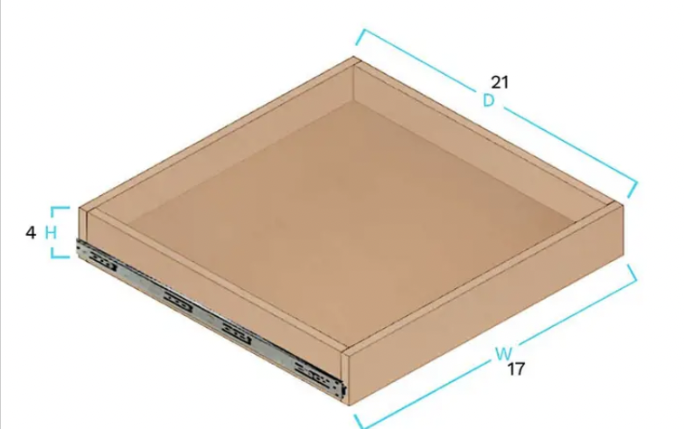 The drawer head on this cabinet is 23-1/2″ wide and 6-3/4″ tall.