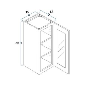 Wall Glass Door Open Frame Cabinet with Finished Interior 15″ x 36″